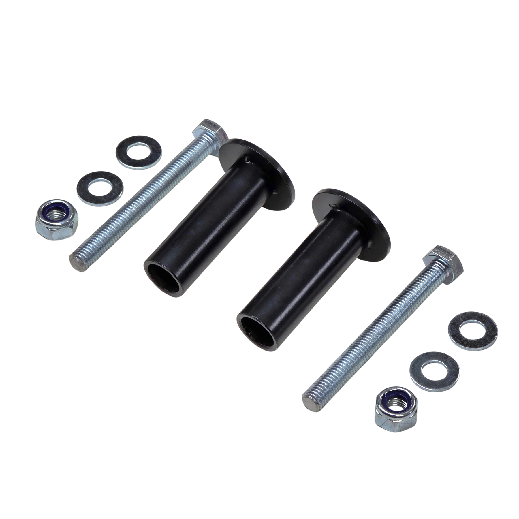 The crush tubes install in the front two holes of the front crossmember mounts, providing correct clamping support and load distribution when tightening the mounting hardware.